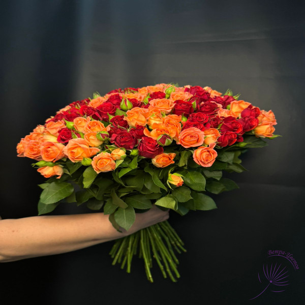 Состав : Кустовая роза -51шт Флористическая упаковка Лента