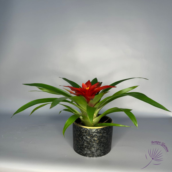Продолжить покупкиГузмания Темпо — это декоративное тропическое растение из семейства Бромелиевые (Bromeliaceae). Родом из Центральной и Южной Америки, гузмания ценится за свои яркие прицветники (часто красные, оранжевые или желтые) и необычный внешний вид.